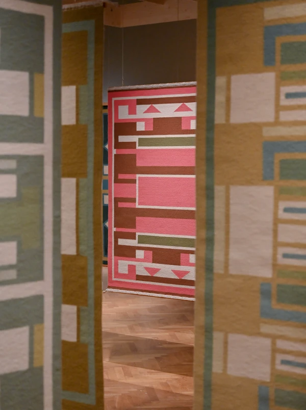 Billedtæpperne blev skabt med afsæt i ældgamle håndvævningsteknikker og egen indfarvning af garner, og i en lang periode indsamlede hun selv planter til farverne. Derudover vises minutiøse mønstertegninger, maleriske akvarelskitser og originale farveprøver, der giver et unikt indblik i hendes kunstneriske proces.